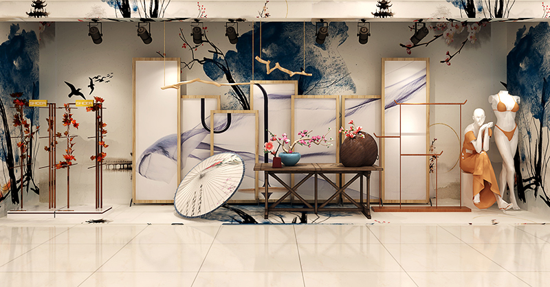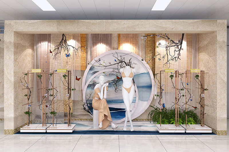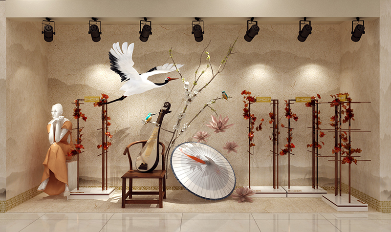 2018秋冬新品共分为三个系列:秋水、韶华、惊鸿进行主题陈列,从产品设计的元素中提取零感,将每一款产品都巧妙完美的融入每一个陈列场景里……