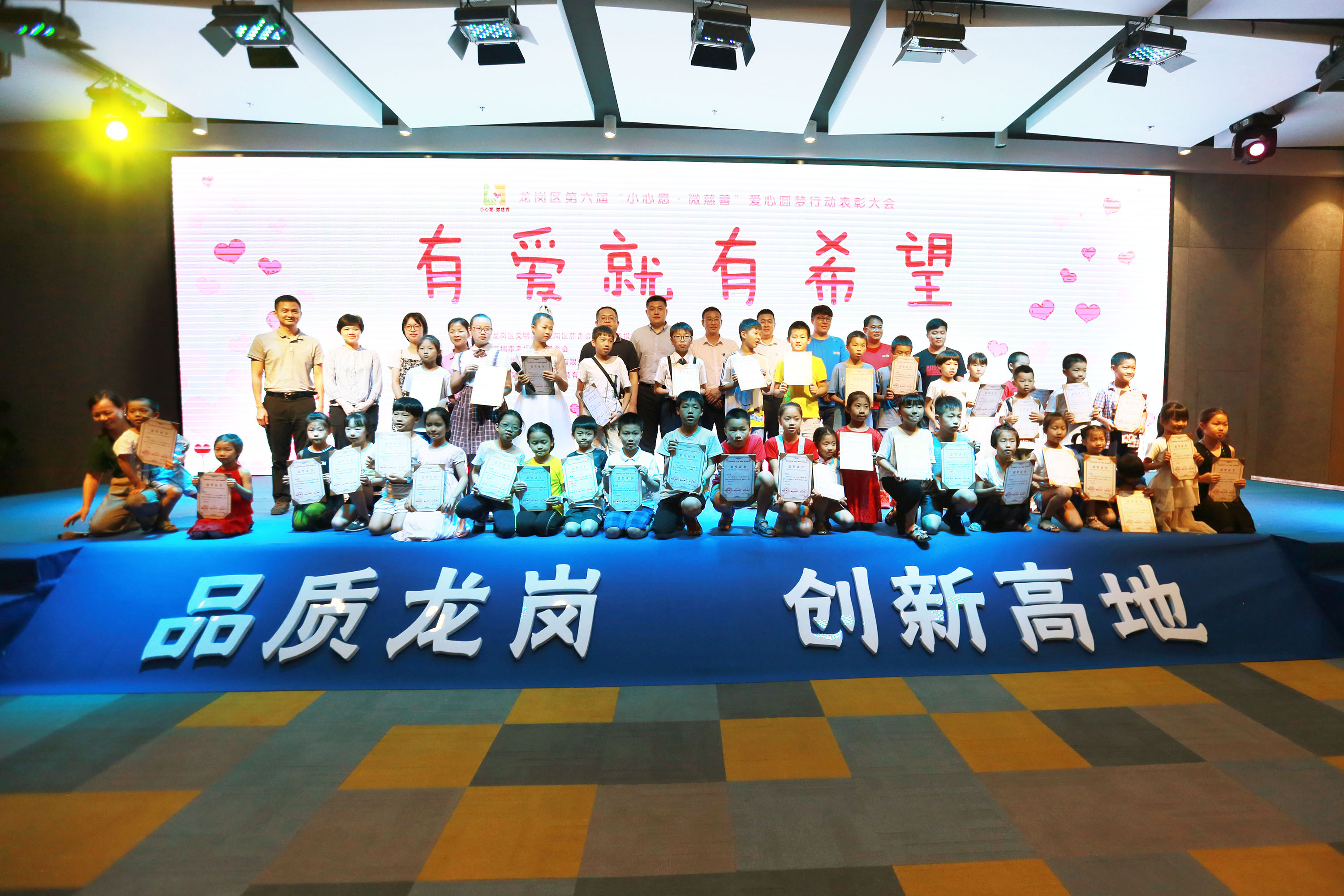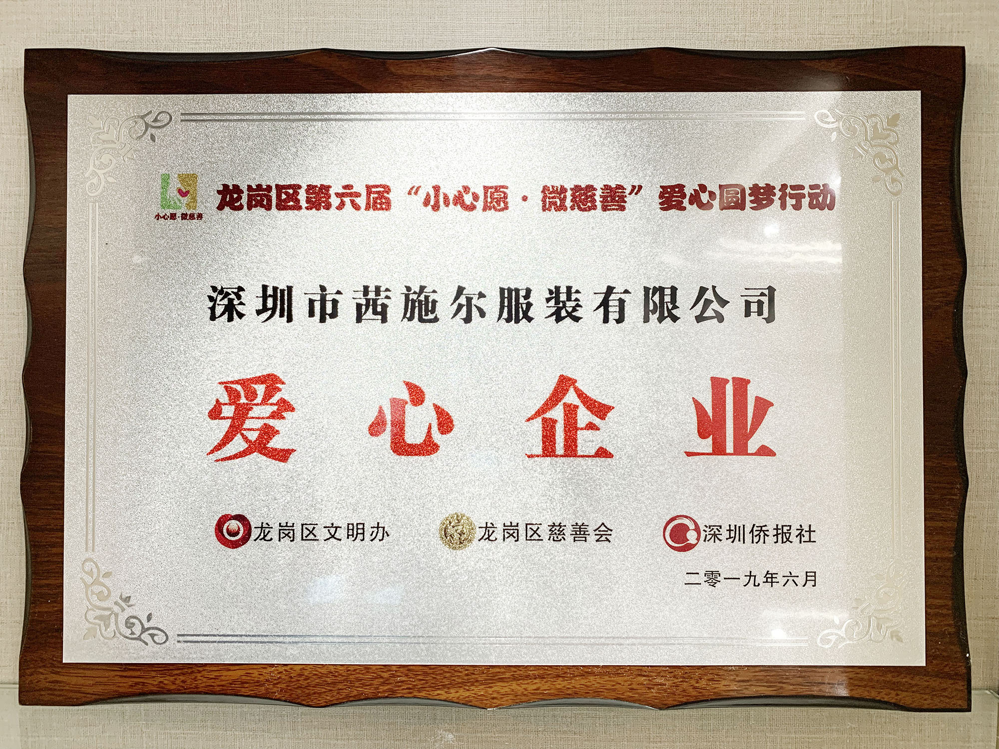 上周日下午,龙岗区第六届“小心愿·微慈善”爱心圆梦行动表彰大会温暖举行。会上,深圳市幸福慈善基金会获颁爱心协办方嘉奖牌匾,深圳市茜施尔服装有限公司等5家企业获颁爱心企业嘉奖牌匾,50名爱心报童获颁“爱心少年”嘉奖证书。