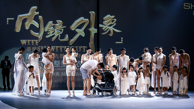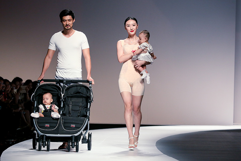 刚刚在服交会开幕式的秀台上,我们看到有孕妈妈,有妈妈带着宝宝,还有一家三口一起上场,场面非常的温馨,想向观众传递什么样的品牌理念呢?